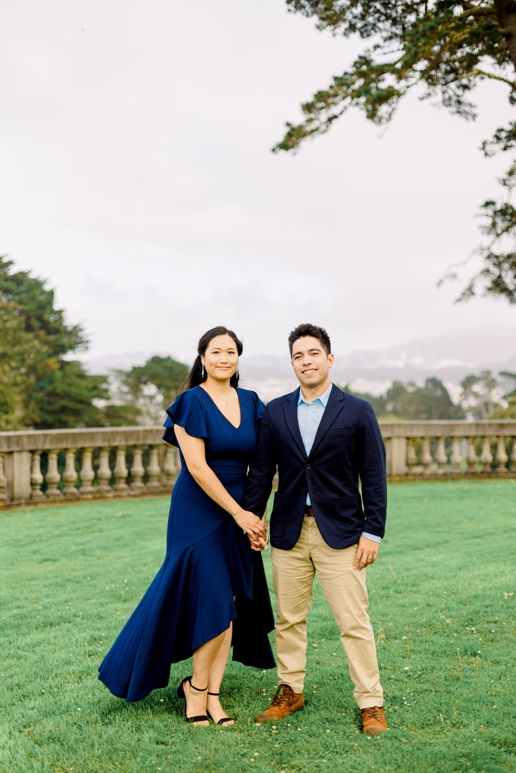 We wanted to hit a few San Francisco landmarks to pay tribute to their hometown. We started here, at the Legion of Honor, and ended the session at the famous Sutro Baths. Click here to see the second part of their engagement photo session to get some inspiration for your own!